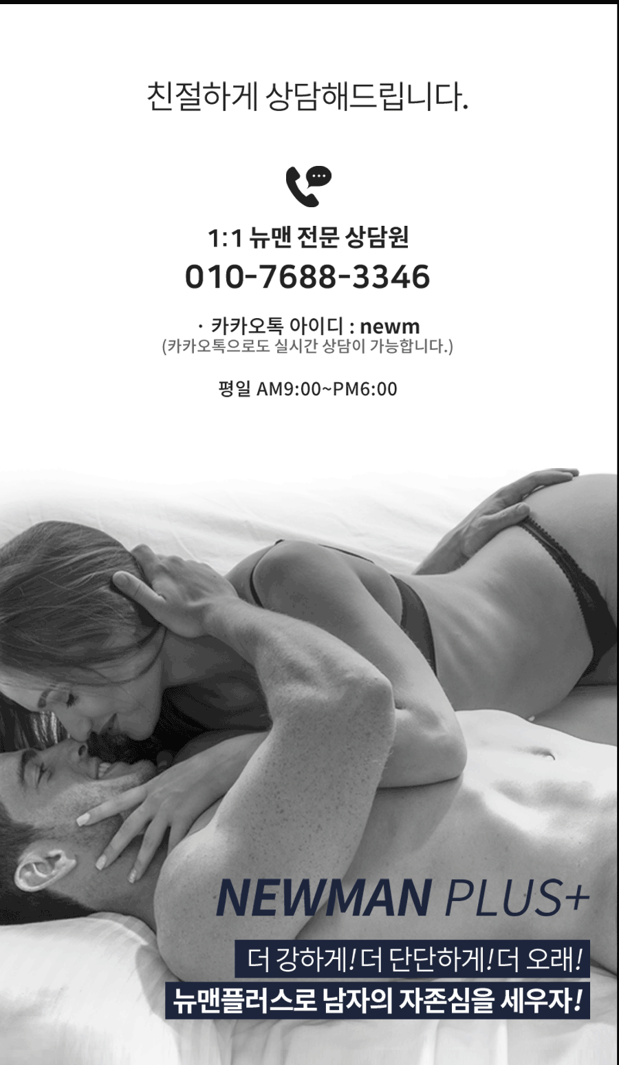 * 뉴맨프로를 사용하면서 사이즈와 효과부분은 꼭 담당자와 상의 후 사이즈를 교체 하시거나 효과를 보실수 있도록 도움을 받으시기 바랍니다. 특히 사이즈교환은 한달이내 3회 교환이 가능 하니 본인이 사이즈를 결정하셔서 교환 하신는 것보단 담당 상담원과 상담 후 교환을 하시는게 더욱 좋습니다.