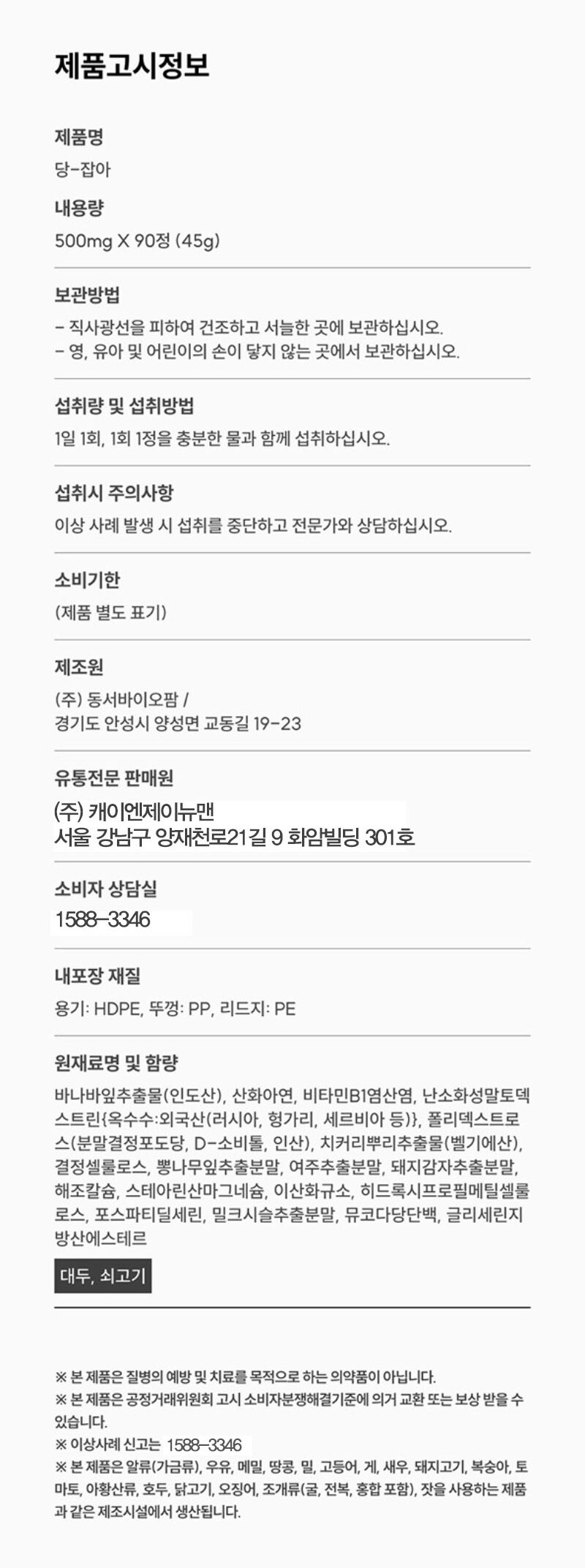 혈당개선으로 내몸을 건강하게 당잡아 1set_4박스 1년분
